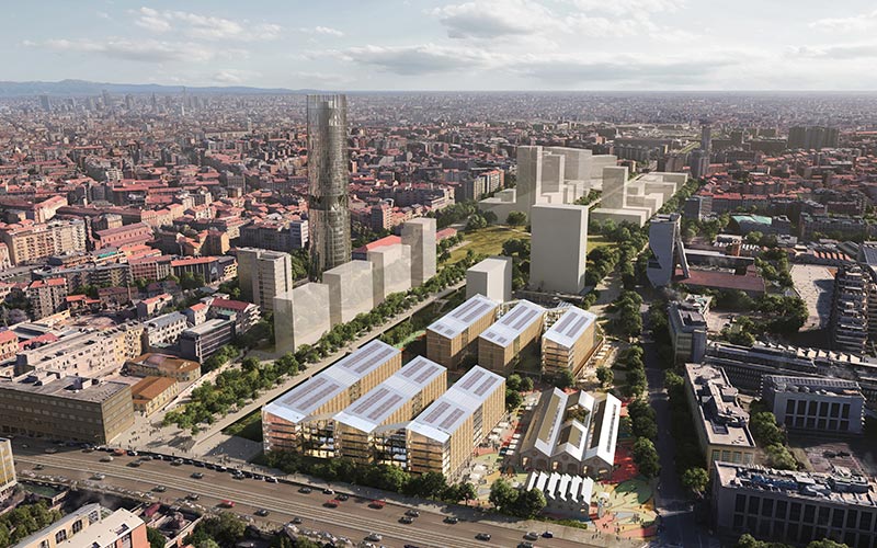 “La sostenibilità è al centro del nostro concetto di design. L'intero villaggio si collegherà ai circuiti preesistenti del distretto e – tra le varie caratteristiche – strategie di raffreddamento passivo, pannelli solari e giardini sulle terrazze garantiranno che il villaggio eviti sprechi di energia e generi gran parte di ciò che consuma in loco, utilizzando materiali rinnovabili e a basse emissioni di carbonio” è il pensiero di Colin Koop, Partner dello studio di architettura SOM, Skidmore, Owings & Merrill, che in collaborazione con COIMA, Covivio e Prada Holding curerà il progetto.